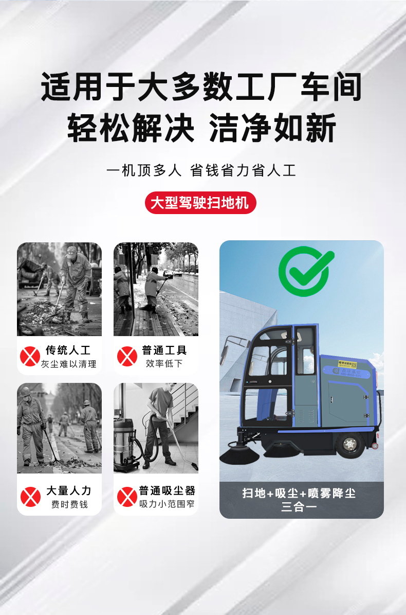 現(xiàn)在工廠的清潔方式發(fā)生了很大的變化了,不再是拿著個掃把清掃地面了,而是用機(jī)械代替了,不管是工廠車間內(nèi)還是廠區(qū)都是使用機(jī)器設(shè)備做